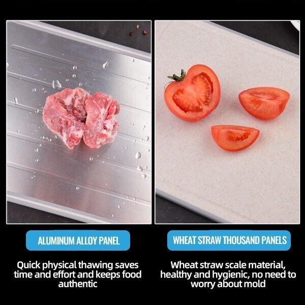 This product is equipped with a drip tray, will catch all liquids dripping from thawing food, more convenient for our daily use. And the drip tray also has a non-slip function, preventing the tray from slipping across the workbench.
