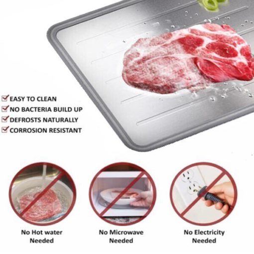 There’s nothing worse than coming home from work and realizing that there aren’t any fresh proteins (chicken/steak/pork/fish) in the fridge to cook. With this defrosting tray, I’m able to grab something from the freezer and have it ready to cook in minutes! The tray is big enough to defrost proteins for the whole family, and I can just throw it in the dishwasher when it’s done! Highly recommend!