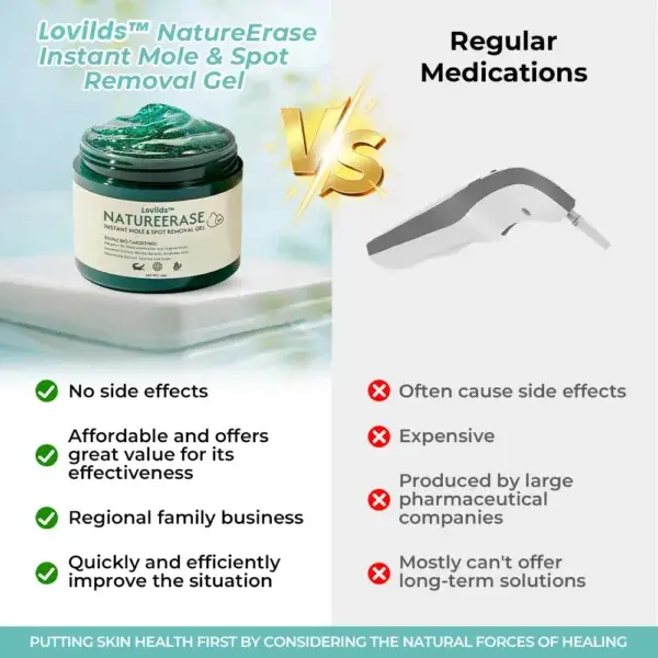 Whether you’re addressing stubborn blemishes or striving for a naturally flawless complexion, the Lovilds™ PRO NatureErase Instant Mole & Spot Removal Gel delivers precision and lasting results every time.