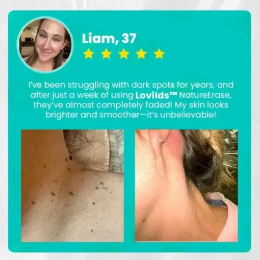 After just one week, the transformation was incredible. My skin tag and blemishes were nearly gone, and my skin looked clear, bright, and flawless. I feel so much more confident now! The Lovilds™ PRO NatureErase Instant Mole & Spot Removal Gel has truly exceeded my expectations, and it’s now an essential part of my skincare routine.