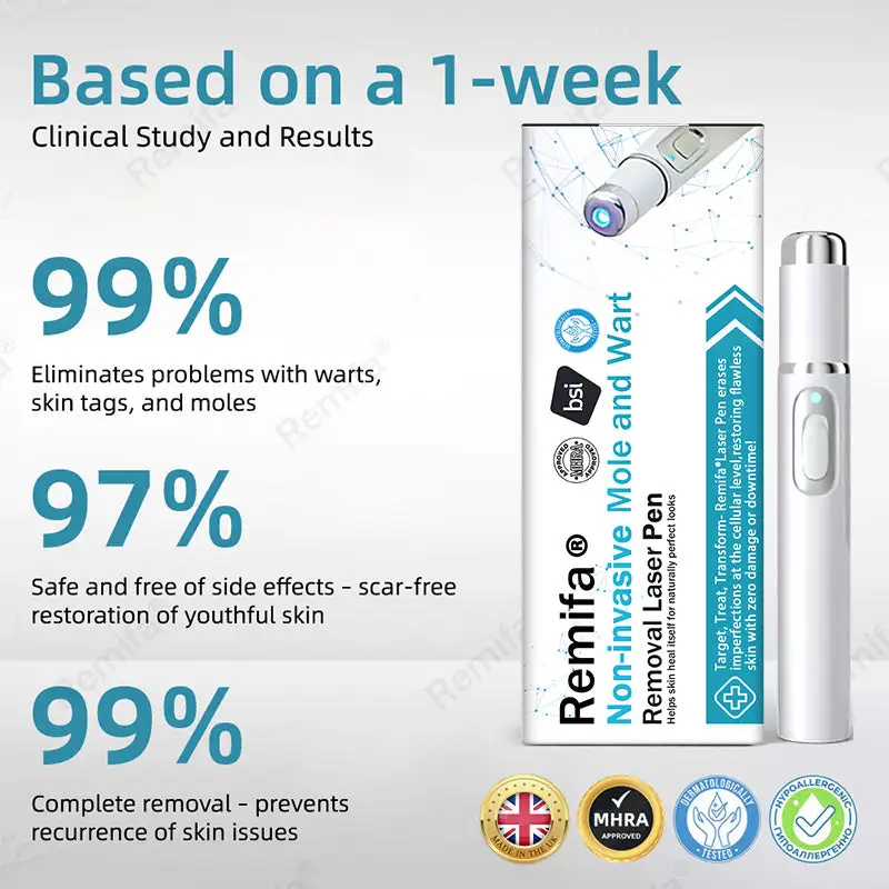 Say goodbye toย expensive dermatology treatments, painful surgical procedures, and ineffective creamsย that fail to deliver lasting results. Theย REMIFAยฎย Laser Penย provides aย safe, non-invasive, and professional-grade solutionย designed for convenientย at-home use.ย Withย precision COโ laser technology,ย REMIFAยฎ effectively targetsย moles, warts, skin tags, dark spots, and other imperfectionsโall without cuts, burns, or irritation. Itsย MHRA-approved ultra-pulsed modeย ensuresย controlled, layer-by-layer removal, minimizing the risk of scarring while promotingย natural healing and skin regeneration.