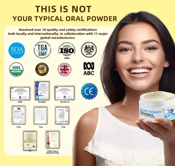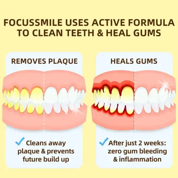 βI was struggling withΒ periodontitis, which left myΒ gums painful,Β swollen, and prone to bleeding whenever I brushed my teeth. A friend recommended I try ππ²π’π€ππ²β’ Focussmile Bee Venom Treatment Oral Powder, so I decided to give it a shot. Iβve beenΒ using it for 1 week,Β and it already made a noticeable difference. TheΒ inflammation has reduced, the bleeding is nearly gone, and my gums feel much healthier and stronger.Β Thanks to this product, I can eat and brush without discomfort and feel confident Iβm taking control of my gum health.βΒ β Abigail Morts, 36