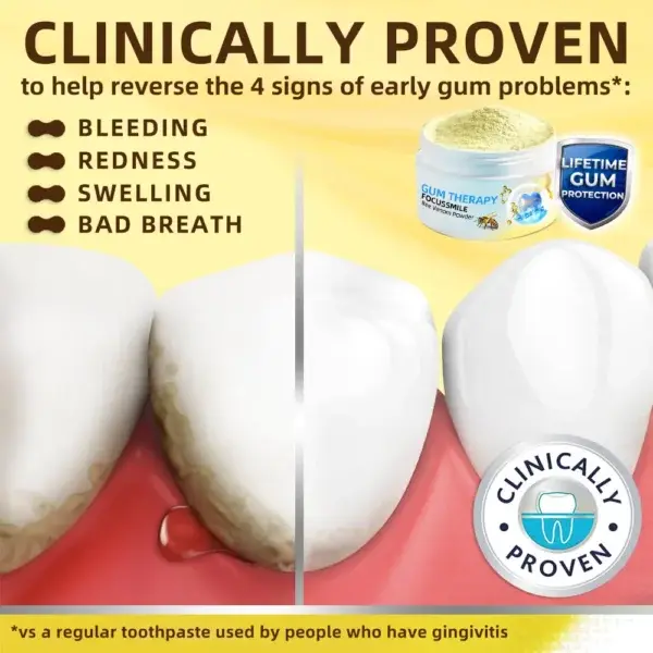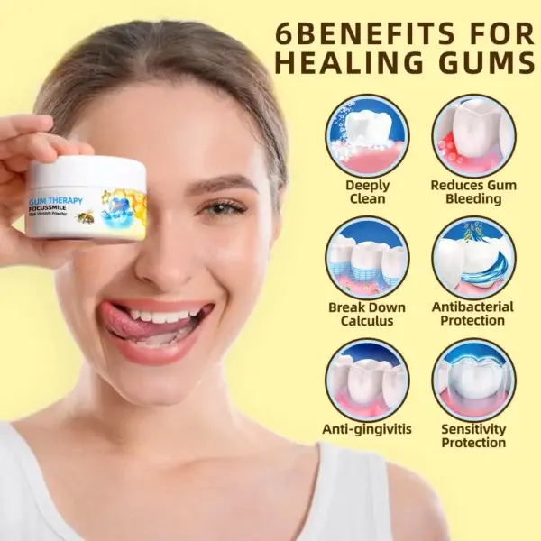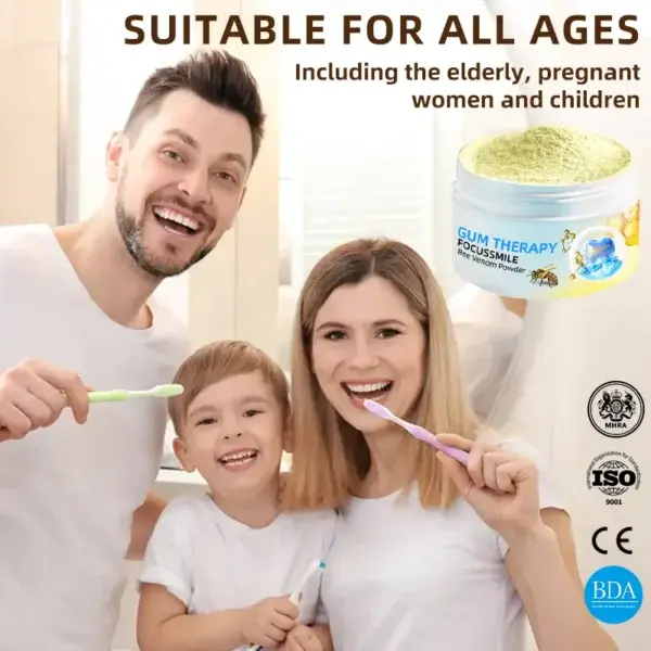 βI was dealing withΒ swollen, painful gums and bleeding due to gingivitis, which made me evenΒ less inclined to brush my teeth. A friend suggested I try ππ²π’π€ππ²β’ Focussmile Bee Venom Treatment Oral Powder, so I startedΒ using them about 4 days ago.Β I find it easy toΒ use without any pain, plus they have a refreshing mint flavor. Within just a few days, I noticed aΒ reduction in gum inflammation. By the end of the first week,Β my gums felt less swollen and sensitive. Now, with continued use, myΒ gums no longer cause pain, and I can comfortably enjoy my favorite foods and drinks again. It really works!βΒ β Jamie Howell, 41