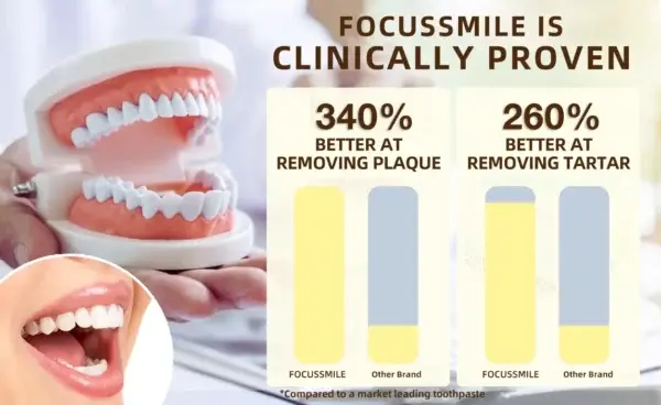 ππ²π’π€ππ²β’ Focussmile Bee Venom Treatment Oral Powder is specifically designed to not onlyΒ remove plaqueΒ but also dissolve stubborn tartar deposits. Its advanced formulaΒ softens and breaks down calcified tartarΒ using the antibacterial and enzymatic properties ofΒ bee venom.Β Melittin, a powerful peptide found inΒ bee venom, works to weaken the bonds within tartar buildup, allowing it to be naturally removed during brushing. This process prevents further irritation and creates a smoother surface on teeth, reducing the risk of plaque re-attachment and promoting long-term oral health.