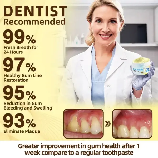 ged gum tissueΒ andΒ visibly recovers gum health in just 7 days.Β ByΒ reinforcing gum structure and restoring vitality, this treatment helps you achieve healthier gums in record time.