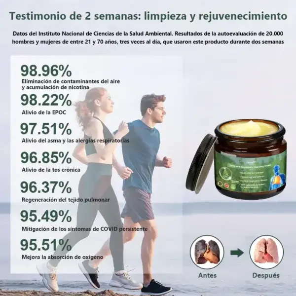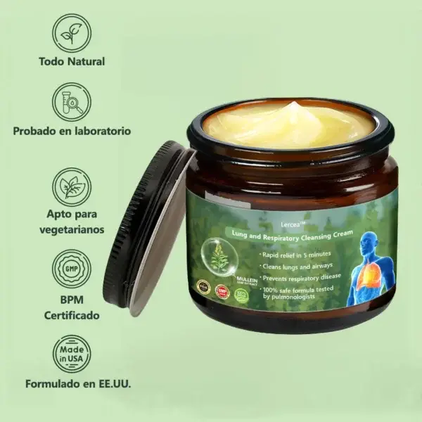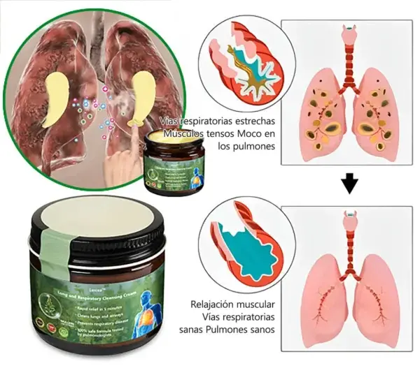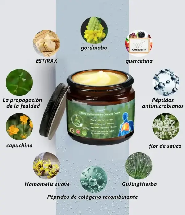 γProfessional Crema γOrganic Lung Cleansing & Repairing β Limpia la trΓ‘quea y los residuos pulmonares β Repara los alvΓ©olos β Regenera el tejido traqueal β Combate las alergias/asma β Recupera la sensaciΓ³n de respiraciΓ³n sin obstrucciones β Ayuda con la EPOC.