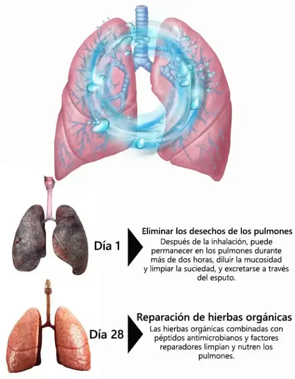 β En un ensayo clΓnico de 28 dΓas en el que participaron 2.572 personas de todo el mundo, se demostrΓ³ que el producto tenΓa un efecto limpiador y regenerador muy potente en los pulmones de fumadores de larga duraciΓ³n o inhaladores de polvo.