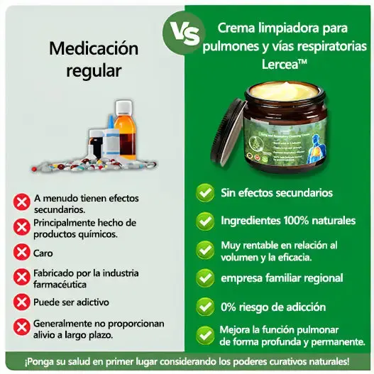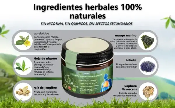 La hemos diseΓ±ado como una crema de limpieza pulmonar para mayor comodidad. En comparaciΓ³n con las gotas o las cΓ‘psulas, la Crema Limpiadora de Pulmones es portΓ‘til y estΓ‘ lista para usar, lo que la hace ideal para los estilos de vida modernos y acelerados. AdemΓ‘s, la aplicaciΓ³n permite que los ingredientes se liberen gradualmente, proporcionando beneficios continuos en lugar de absorberlos todos a la vez, lo que resulta especialmente beneficioso para tratar problemas respiratorios crΓ³nicos. Nuestro producto estΓ‘ elaborado con ingredientes herbales naturales y huele ligeramente a hierba fresca, al tiempo que hidrata eficazmente los pulmones.