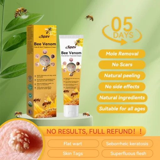 Bee venom comprises multiple bioactive elements like melittin, apamin, and adolapin, which have been scientifically demonstrated to effectively combat skin tags or warts. Notably, among its enzymatic components, phospholipase A2 shines for its capacity to degrade abnormal tissue, streamlining the process of removing skin tags or warts.