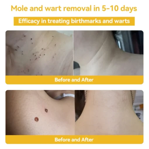 Furthermore, laboratory studies have shown that the constituents of bee venom exhibit antiviral properties. This implies that bee venom may hinder the replication of viruses that might cause skin infections, potentially aiding in infection prevention during the removal of skin tags or warts. Research has demonstrated that bee venom induces apoptosis, or programmed cell death, in abnormal skin cells, resulting in the eradication of skin tags or warts. Its active ingredient destroys wart tissue, encouraging it to loosen and fall off. Apply this wart remover to the face or body to dry and reduce the lesions until they naturally fall off the surface of the skin.