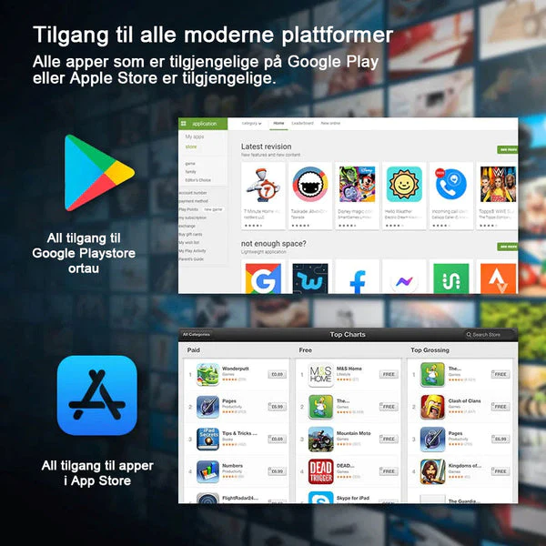✅ Tilgang til alle populære plattformer – Alle apper som er tilgjengelige på Google Play eller Apple Store er tilgjengelige.