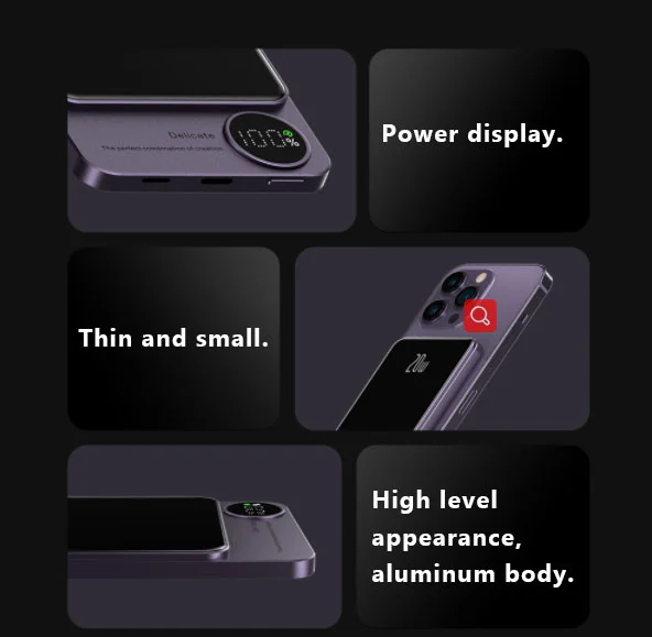 2.As the magnetic power bank has been hot while charging is normal. In case of overheating, it will automatically reduce the charging speed or stop charging until the temperature drops.