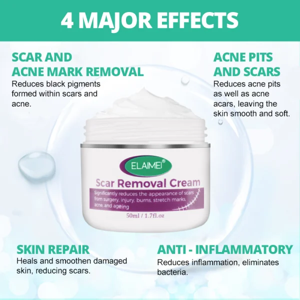 • REMOVES SCARS – It removes old and new scars on your face, body, legs, and arms. Our scar cream repairs marks from burns, deep scars from surgery, and other blemishes.