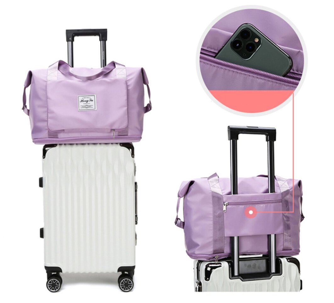 Foldable Large capacity Travel Duffel Bag can help you pack your baggage extra during your trip and you can take it to anywhere just take little room.