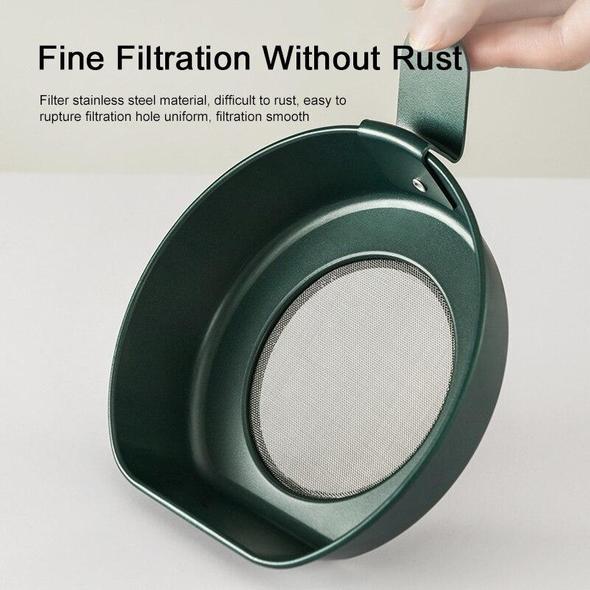 - Grease strainer made from wrought iron material with non-stick coating, this item is practical and safe for kitchen use.