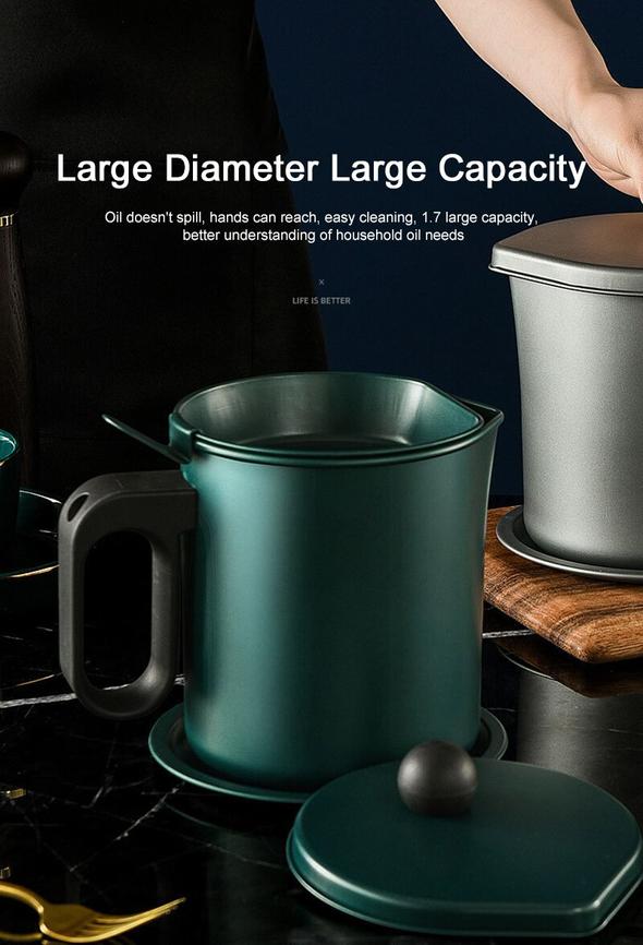 Convenient Large Capacity Grease Container – Convenient 1.6 Quart capacity Easy to hold the handle, avoiding scalding.