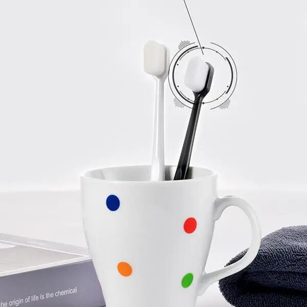 his 10000 Bristle Toothbrush has great tooth cleaning effect and almost no damage to the gums. It has more than 10000 superfine bamboo charcoal fiber bristles.