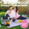 The waterproof compartment underneath features a water resistance-lined compartment that keeps drinks and fruits fresh. Ideal for a picnic/beach on sunny days.