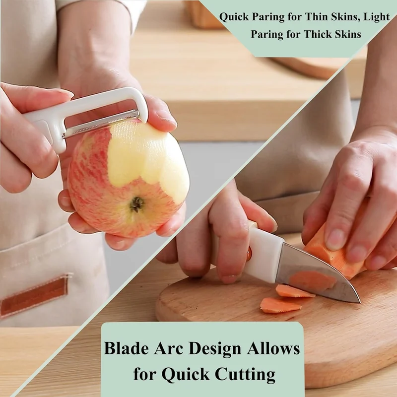 Quick Paring for Thin Skins, Light Paring for Thick Skins: The stainless steel cutter head seamlessly fits the pare, thin and uniform, no waste of pulp, and can be pared both hard and soft.