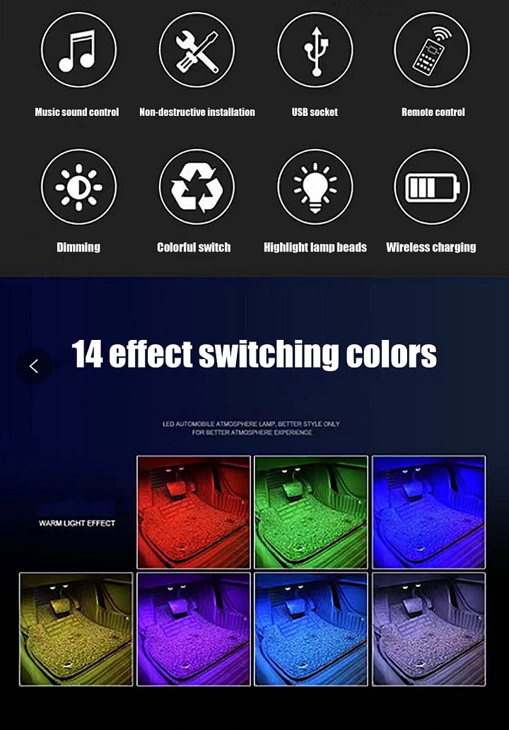 Easy to install: LED lights in car interiors are easy to install. They have an adhesive label on the back, so you can easily install it without any damage to your car. To install, just clean the installation site thoroughly with some alcohol, and then stick the lamp firmly. In this way, you are done