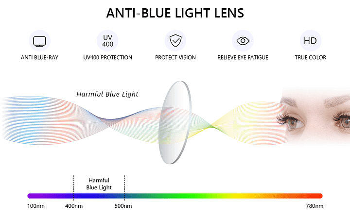 - √ UV400 protection — Anti-Blu-ray Lenses utilize special U.S. substrate processing technology to protect the eyes from ultraviolet rays.