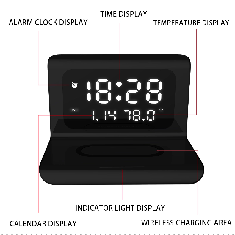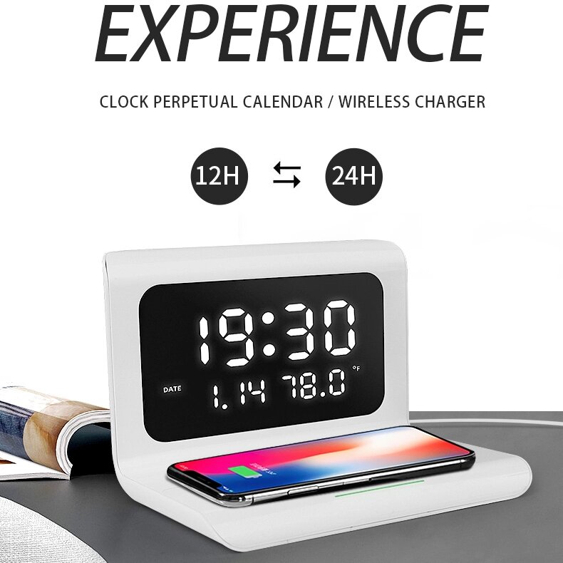 ☎ Our electronic multi-function charging alarm clock adopts a three-in-one design, equipped with an electronic alarm clock, a perpetual calendar and a wireless mobile phone charging pad. It is a practical electronic device, placed in the living room, bedroom and office, making your room as tidy as a desk or bedside table! ! !