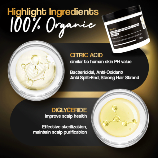 100% organic and natural ingredients, formulated with citric acid for strong hair strands and diglyceride for healthy scalp. This maintains shiny, silky, and overall healthy appearance of your hair.