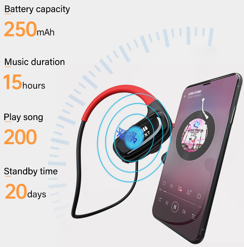 Professional IPX7 waterproof, no fear of sweat, wireless neck-mounted rear-mounted Bluetooth dual-mode mode headphones, it’s the ultimate sports companion, made for the outdoors.