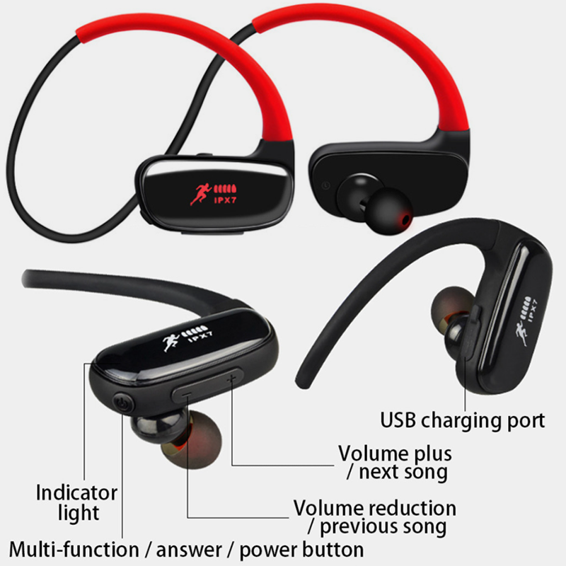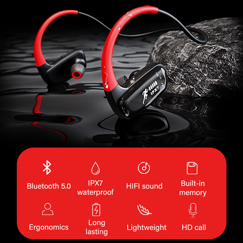 The MP3 player headphones is the professional IPX7 waterproof, that are designed for long period use in water. Designed for sports like swimming, running, fitness, exercise and the like.