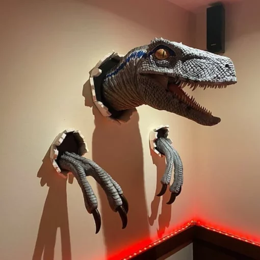 It contains special inlaid eyes with realistic detailing. Features rows of menacing inlaid latex teeth inside his open mouth.Wall mount dinosaur head sculpture: it will become the most valuable museum-level art collection in your home.