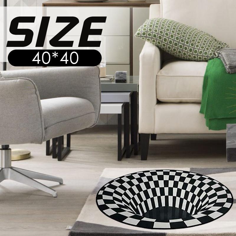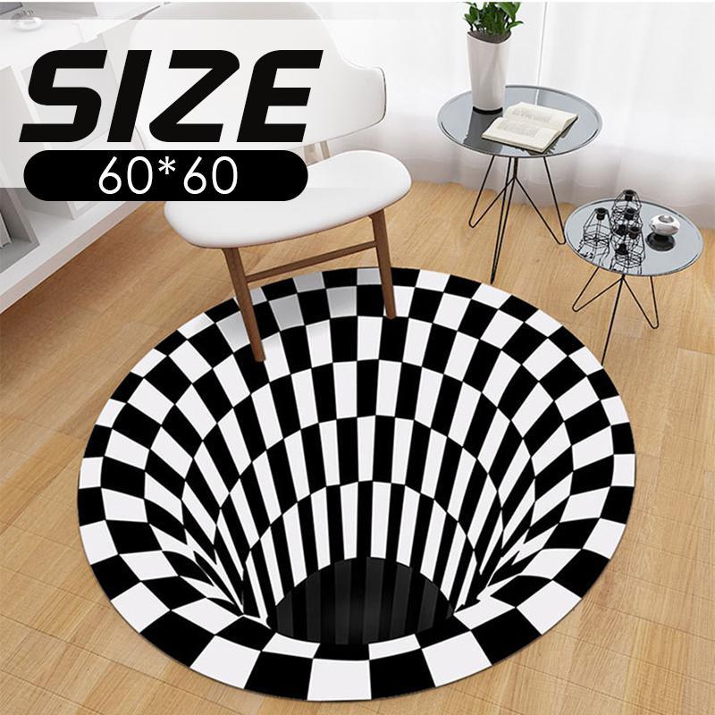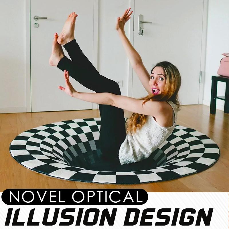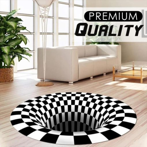 - NOVEL OPTICAL ILLUSION DESIGN. These rugs create timeless and mind-bending pattern that tricks every brain, making it seem as if there is an actual vortex hole in the ground.