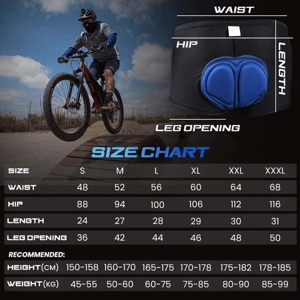 Protective underwear shorts made with quick-dry and soft fabric are a must for indoor/outdoor bicycle enthusiasts. Made from premium, imported nylon this underwear was made to keep the cyclist dry and comfortable for any length of ride! The upgraded fabric stitching makes this feel more ‘close-fitting’ and breathable.