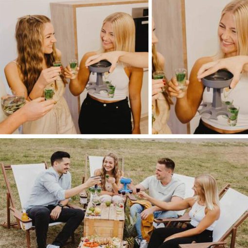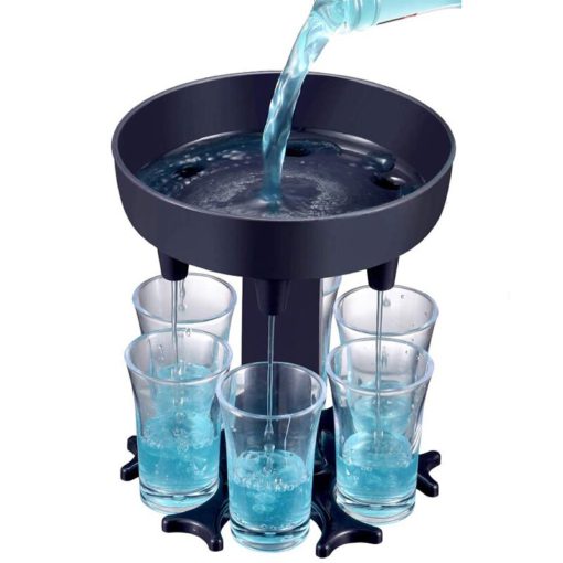 It dispenses that liquid gold to all the shot glasses below and boom, you have shots for six almost instantly. It even includes a carrier, so you can simply lift it up and bring them over to your friends.This is a interesting and elegant way of dispensing.
