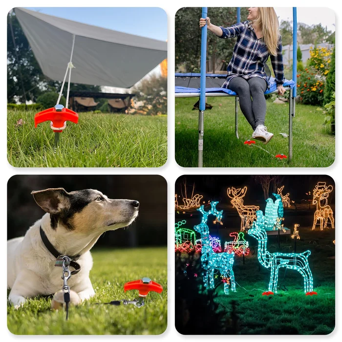 ⛺【 HIGH QUALITY & DURABLE】Made from high-quality Iron+Plastic with a threaded end for easy insert and superior grip when drilling into various hard surfaces. Whether it’s grass, hard soil, gravel, or anything in between, it holds securely.