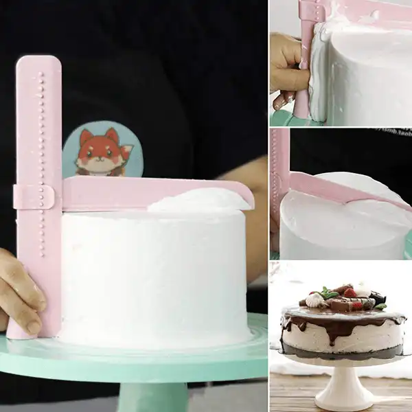 One scraper fits all cakes- you can adjust the height of the scraper to perfectly fit your cake!