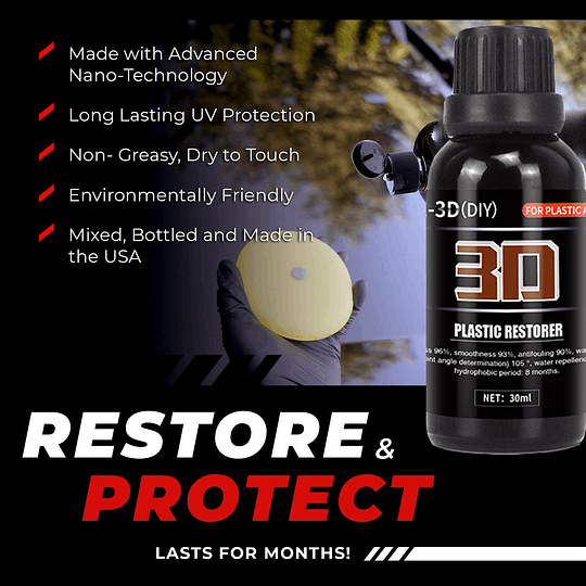 - Easy Application: Just 2 steps – Spray & Wipe to get the faded plastic parts restored.