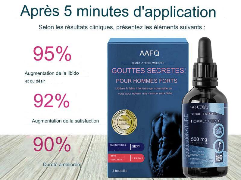 Les Gouttes Secrètes pour les Hommes Forts : Les Gouttes Secrètes pour les Hommes Forts améliorent votre fermeté et votre endurance.
