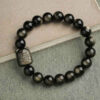 Absorbing Negative Energy Gold Silver Sheen Obsidian Cute Cat Protection Bracelet