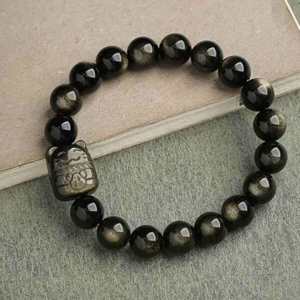 You will receive the Absorbing Negative Energy Gold Silver Sheen Obsidian Cute Cat Protection Bracelet : protect yourself and your loved ones from negative energy.