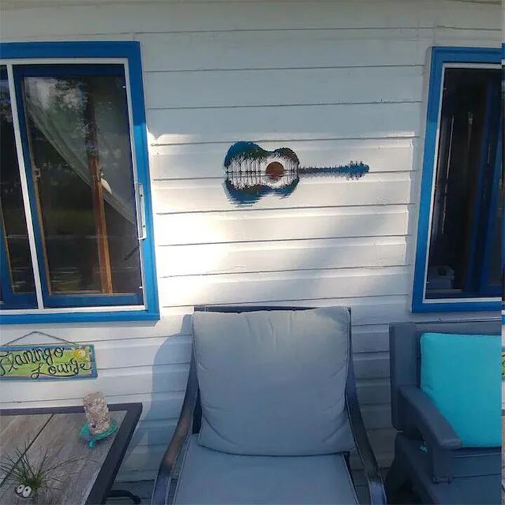 The Guitar Sunset is for both indoor or outdoor decoration that brings a quirky, artsy vibe to any room. The vibrant colors of the guitar against the metallic paint give it an awesome look that’s perfect for anyone who loves music.
