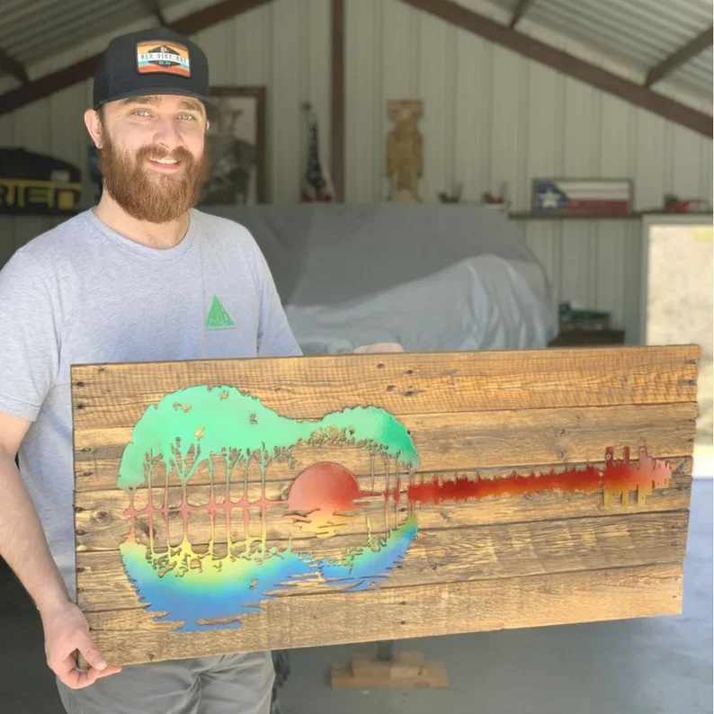 Guitar wall art cut from high-quality steel using precision plasma cutting.