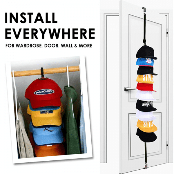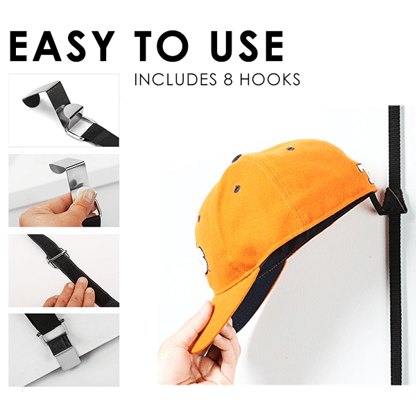 Includes 8 hooks to hold up to 16 Hats in a row to save space effectively. - Holds Everything