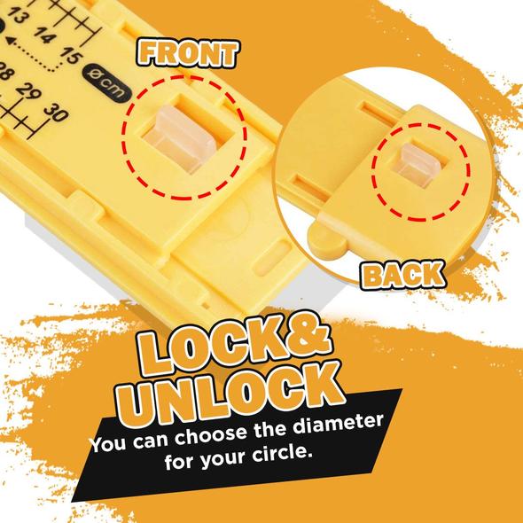 - Freely Adjustable – Simply push or pull the ruler to adjust the size of your circle up to a radius of 30cm.