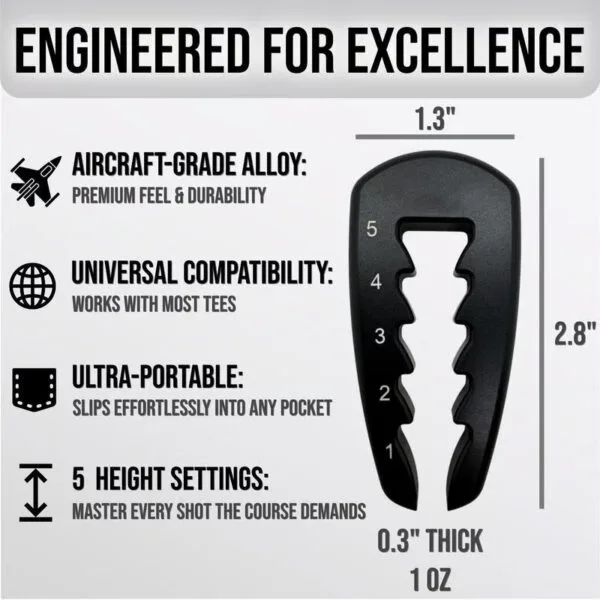 The Adjustable Golf Tee Height Tool ensures precise, consistent tee heights for optimal ball flight, maximizing distance and accuracy with every shot.
