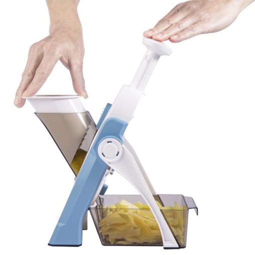 The stability of the suction below makes it safer. Designed to keep hands and fingers away from the blade, this is a safer & easy method of slicing.
