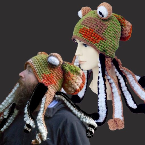 This hat has a very unique design. Its design is inspired by a marine creature-octopus. Our hat is very meticulous in workmanship, it includes the octopus’s head, eyes and tentacles.