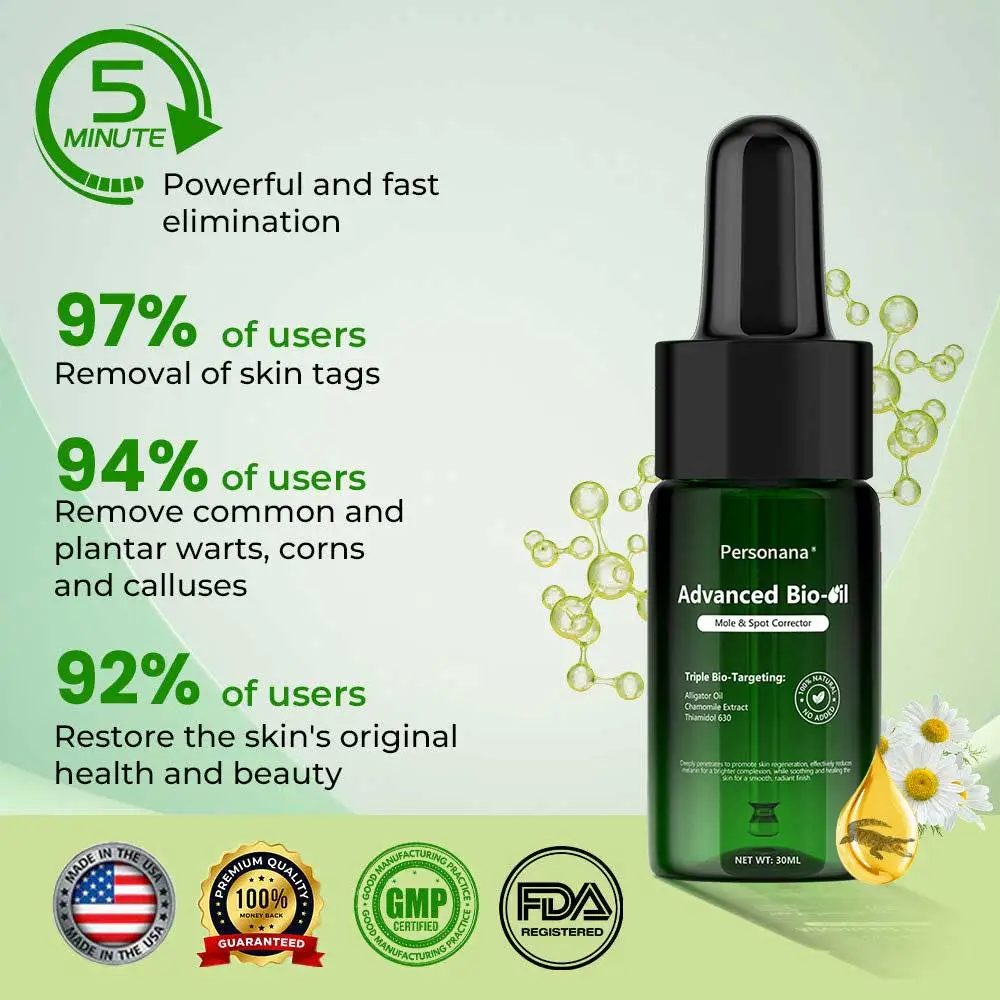 Struggling with persistent skin imperfections like moles, skin tags, dark spots, freckles, or blemishes? The Personana® Advanced Bio-Oil Mole & Spot Corrector is your ultimate skincare solution.
