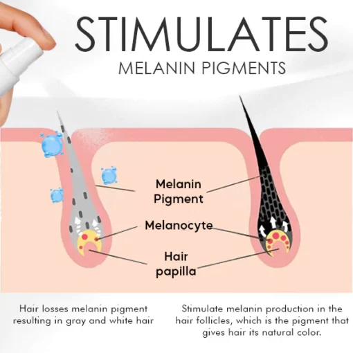 AEXZR™ Hair Darkening Spray is specially formulated with natural ingredients that work together to promote hair darkening. The active ingredients in AEXZR Hair Darkening Spray stimulate melanin production in the hair follicles, which is the pigment that gives hair its natural color. As we age, melanin production slows down, resulting in gray or white hair. By promoting melanin production, AEXZR™ Hair Darkening Spray helps to gradually darken gray hair and restore its natural color.