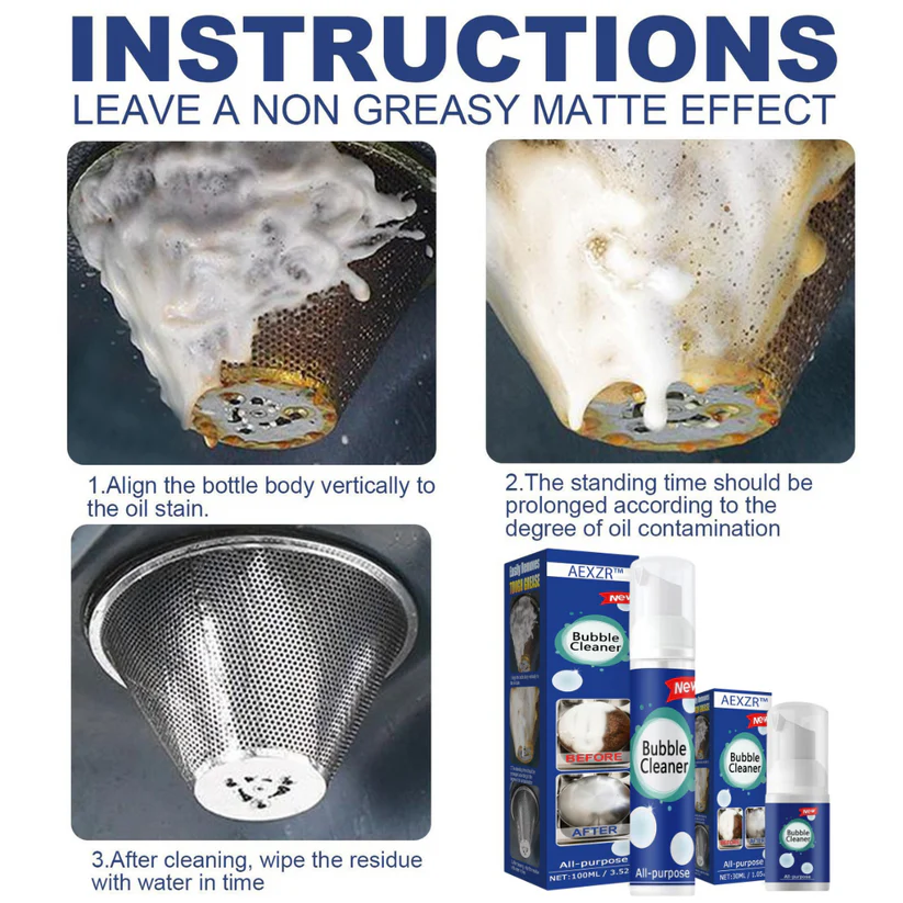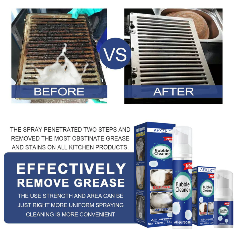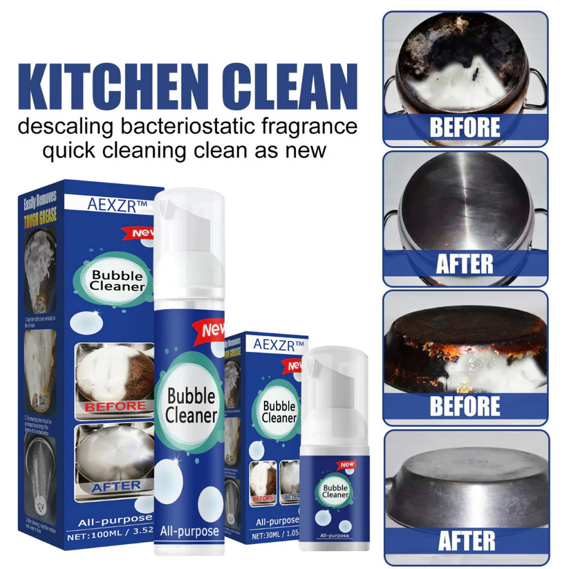 Say goodbye to stubborn kitchen stains and grime! The AEXZR™ Multifunctional Bubble Cleaner is your perfect solution for maintaining a spotless home. This powerful cleaner is formulated to tackle the toughest grease, oil splashes, burnt food, coffee stains, and more. With its non-toxic, eco-friendly, and odorless formula, it is designed to clean effectively without harming surfaces.