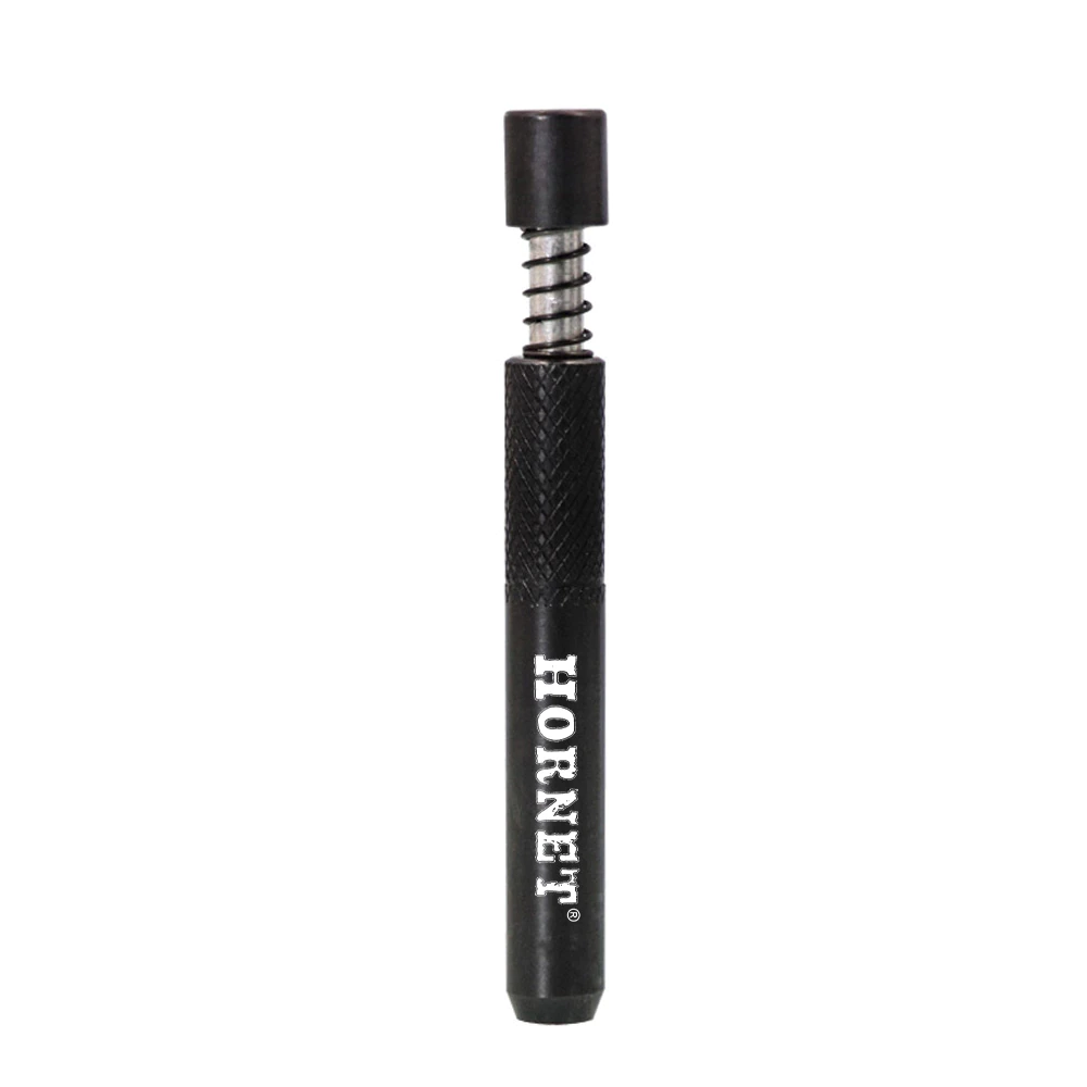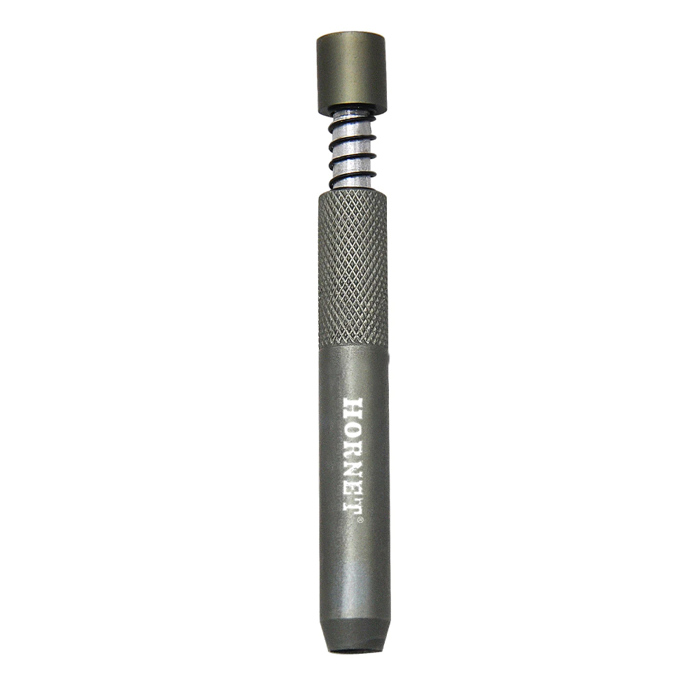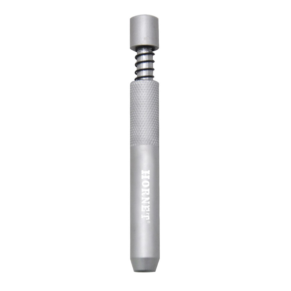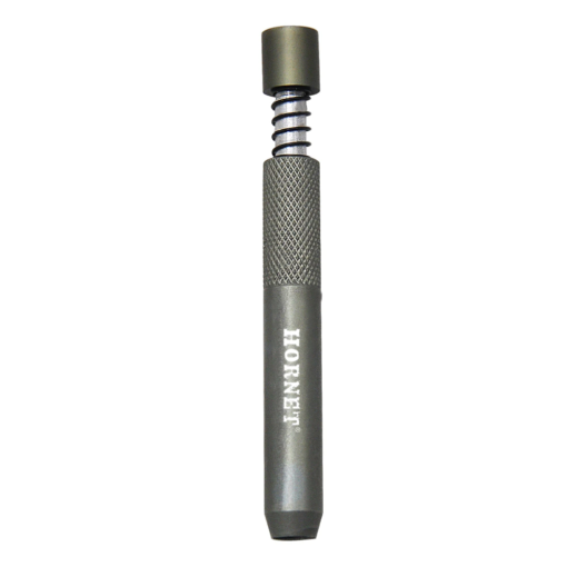 The handle is spring-loaded with an ash ejector. Just give it a push and it knocks out the ash from the end of the one-hitter.